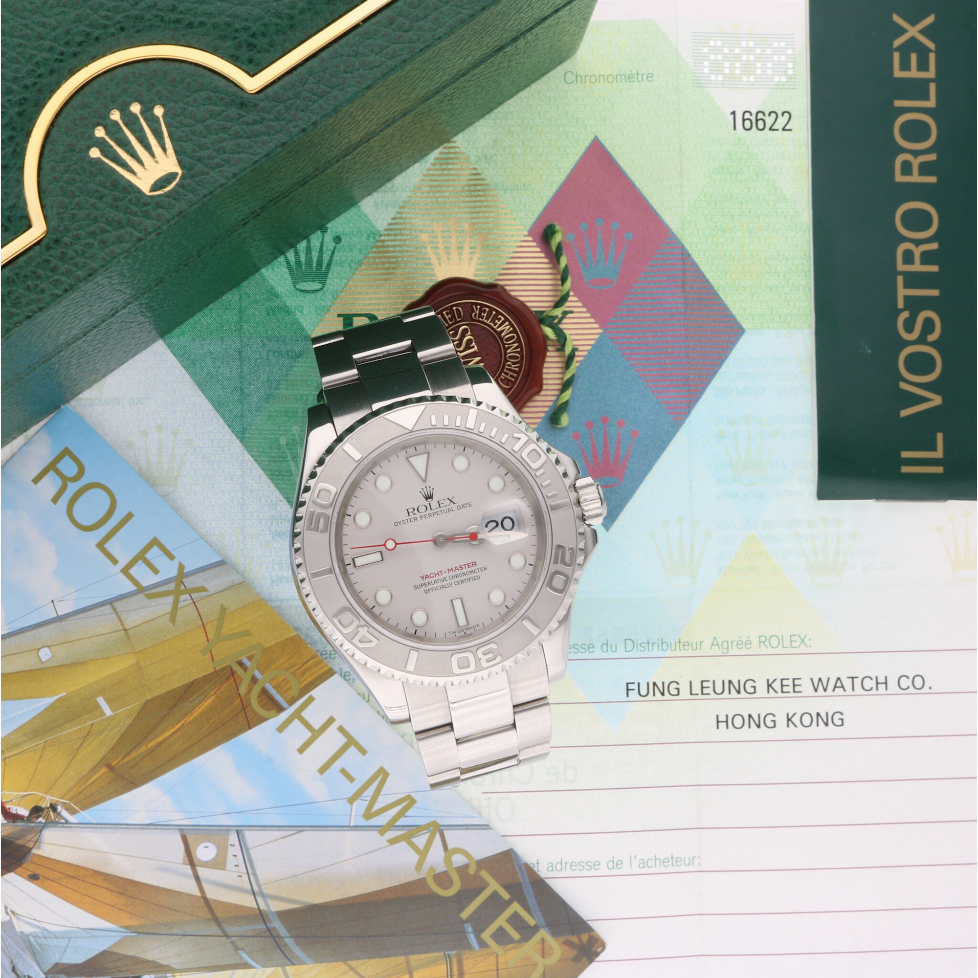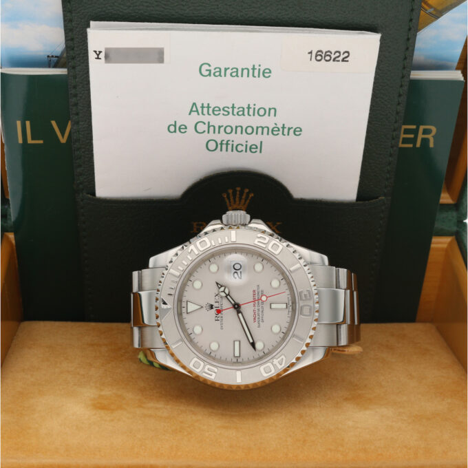 Rolex Yacht-Master in Acciaio referenza 16622 con indici applicati e data a ore 3, fondello e corona a vite, movimento automatico con scatola e documenti, 2002.
