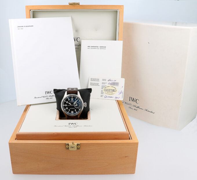IWC Big Pilot’s in acciaio, referenza IW500201, quadrante Nero, movimento meccanico a carica automatica. Anni 2000, Completo di scatola e garanzia e tutti gli accessori.