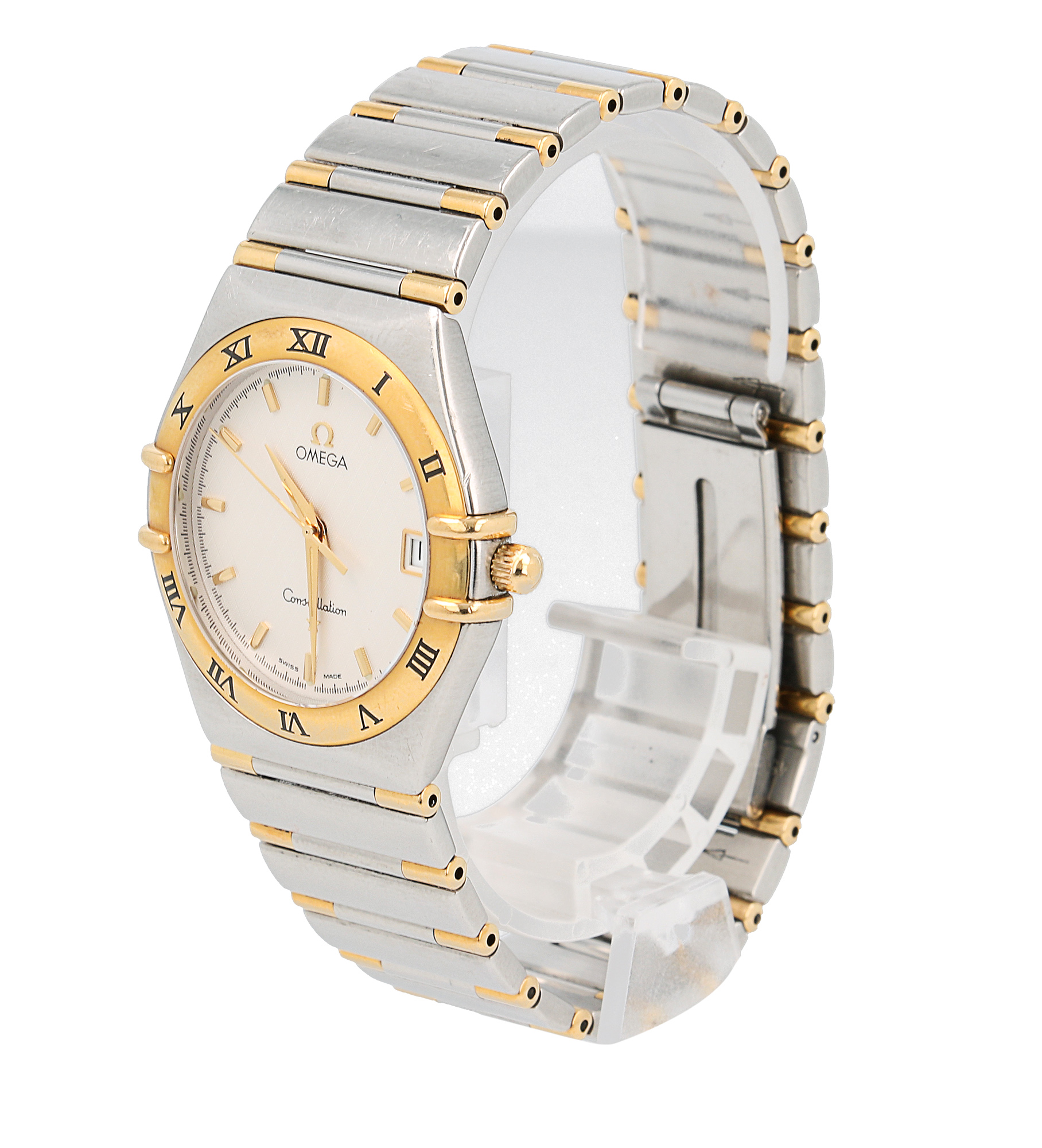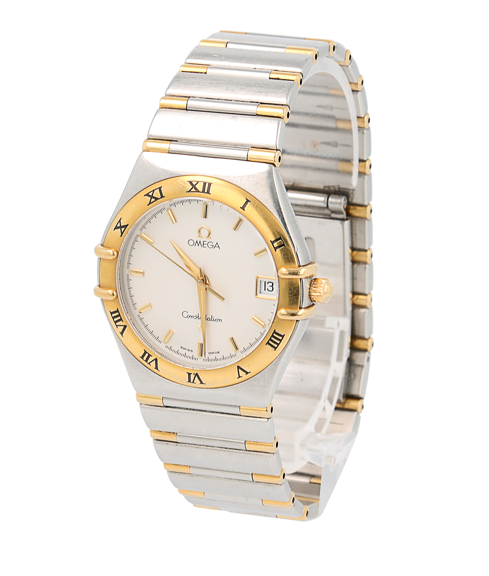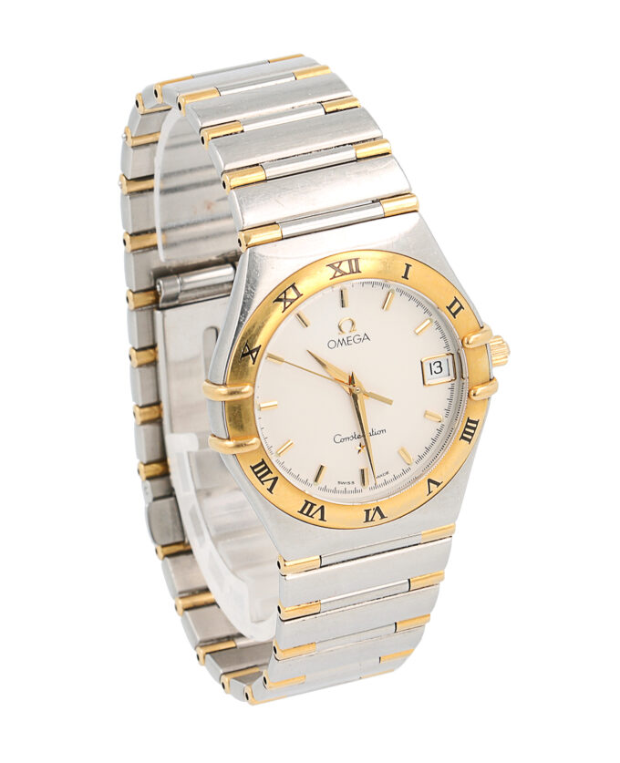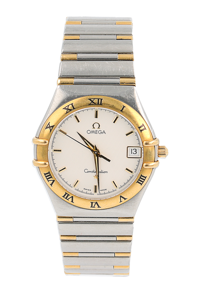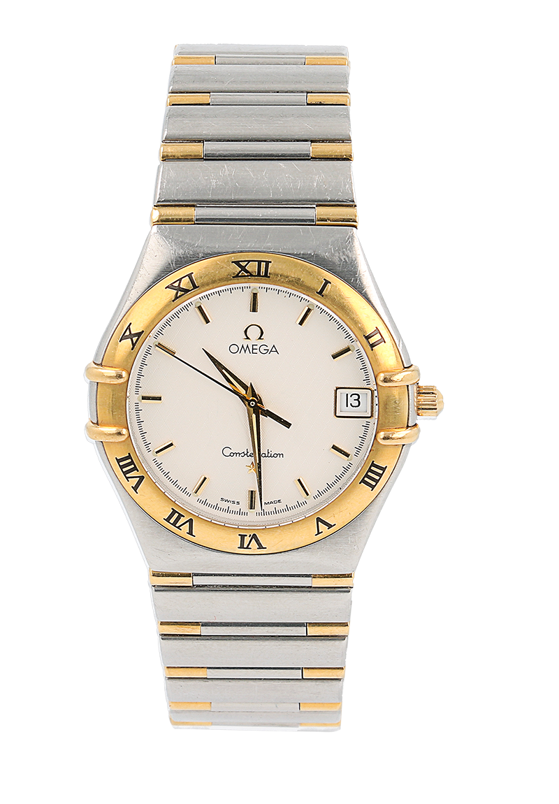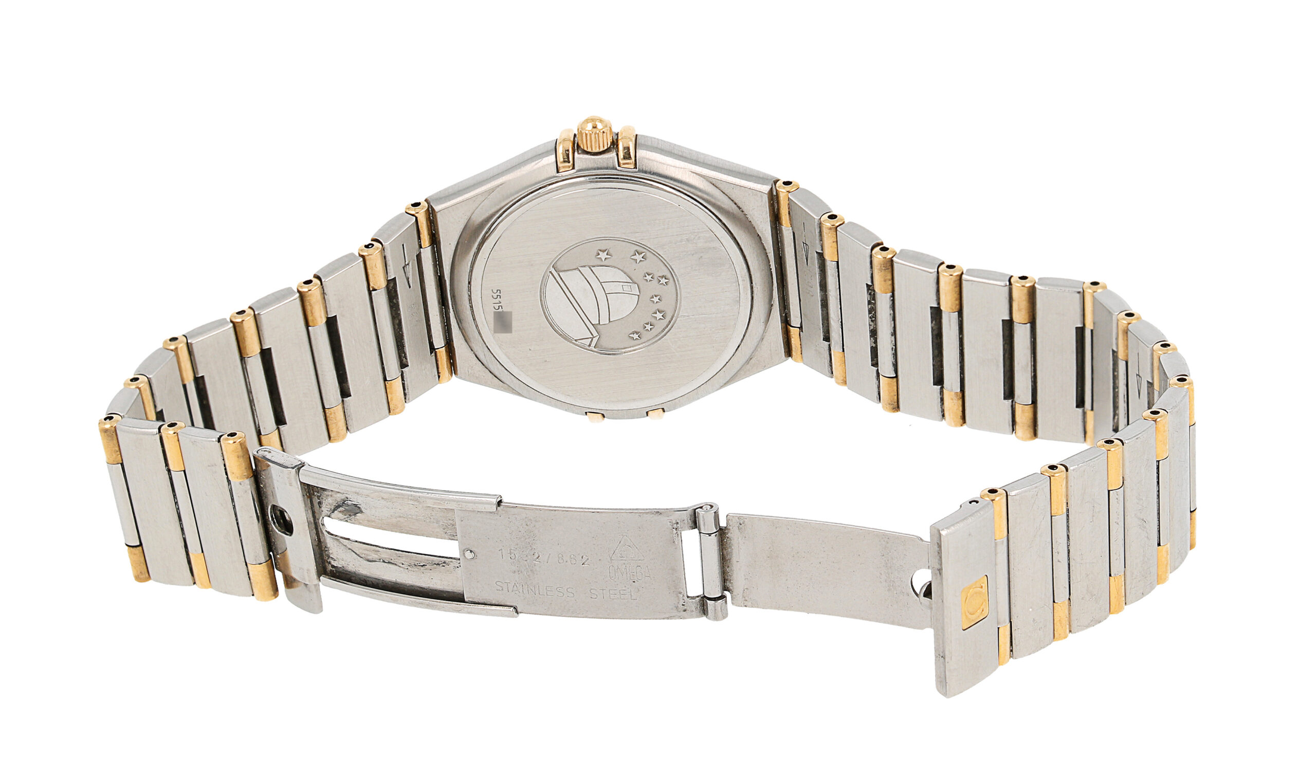 Omega Constellation in acciaio ed oro giallo, referenza 1552/862 quadrante Bianco, fondello a scatto, movimento al quarzo. Anni ’90