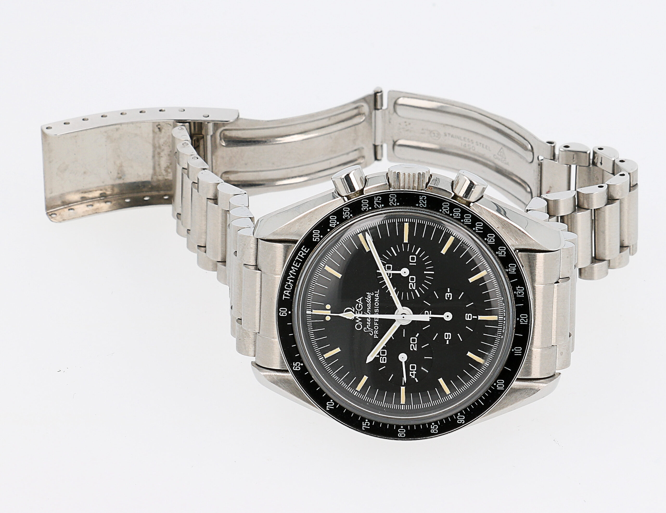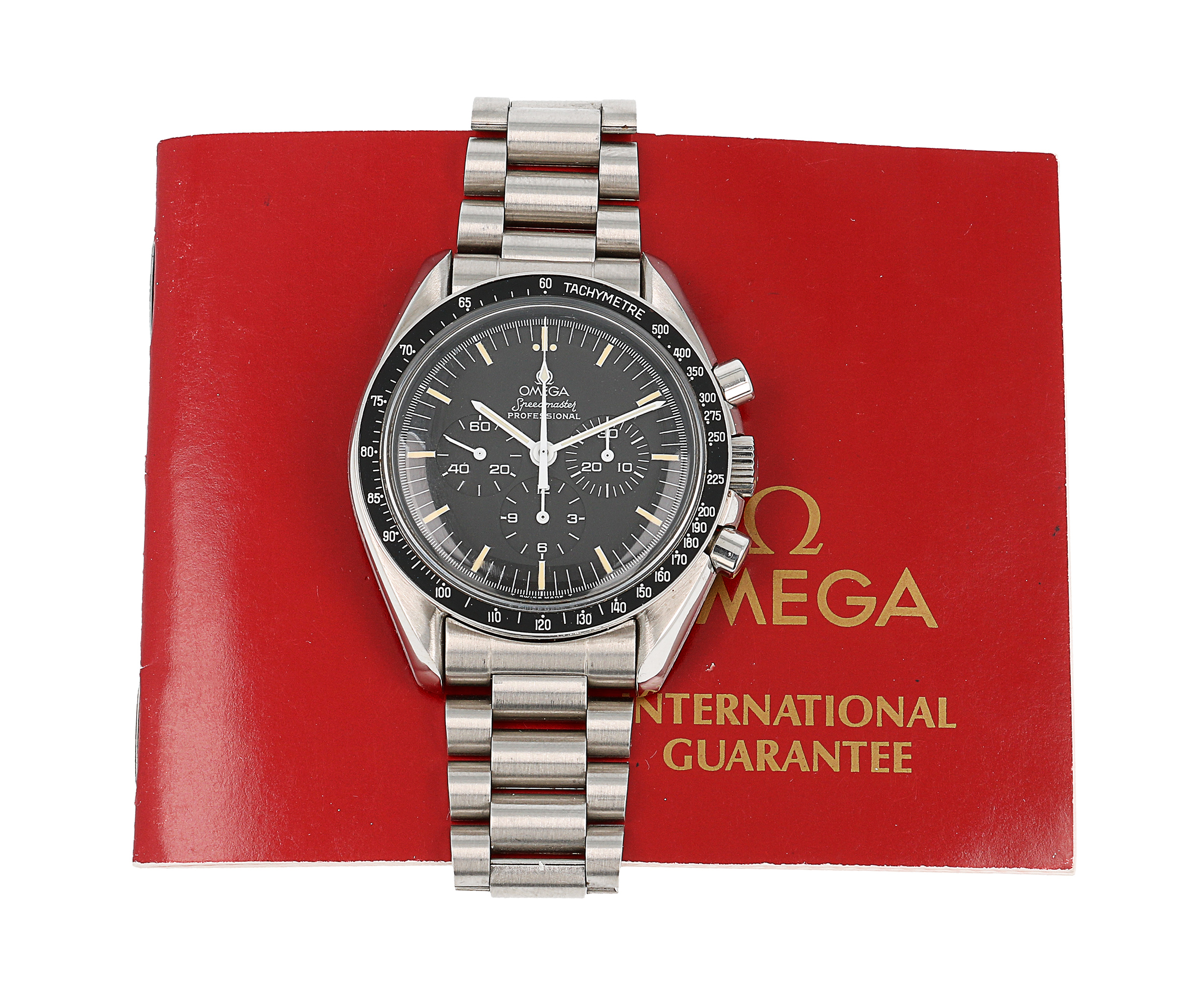 OmegaOmega Speedmaster Professional Moonwatch Edizione Limitata 20° Anniversario “Apollo XI” del 1969 in acciaio , referenza 145.0022, quadrante nero con indici applicati e scala tachimetrica, fondello e corona a vite, movimento Cal. 861 meccanico a carica manuale. L’iscrizione “Apollo XI 1969” sul lato sinistro della cassa è chiara e presente. 4000 pezzi limitati a livello internazionale e non numerati. Con Garanzia. 1989.