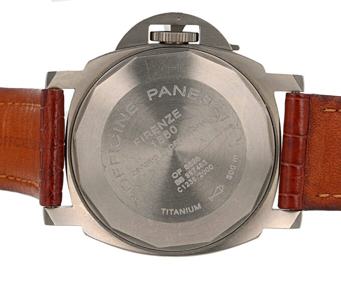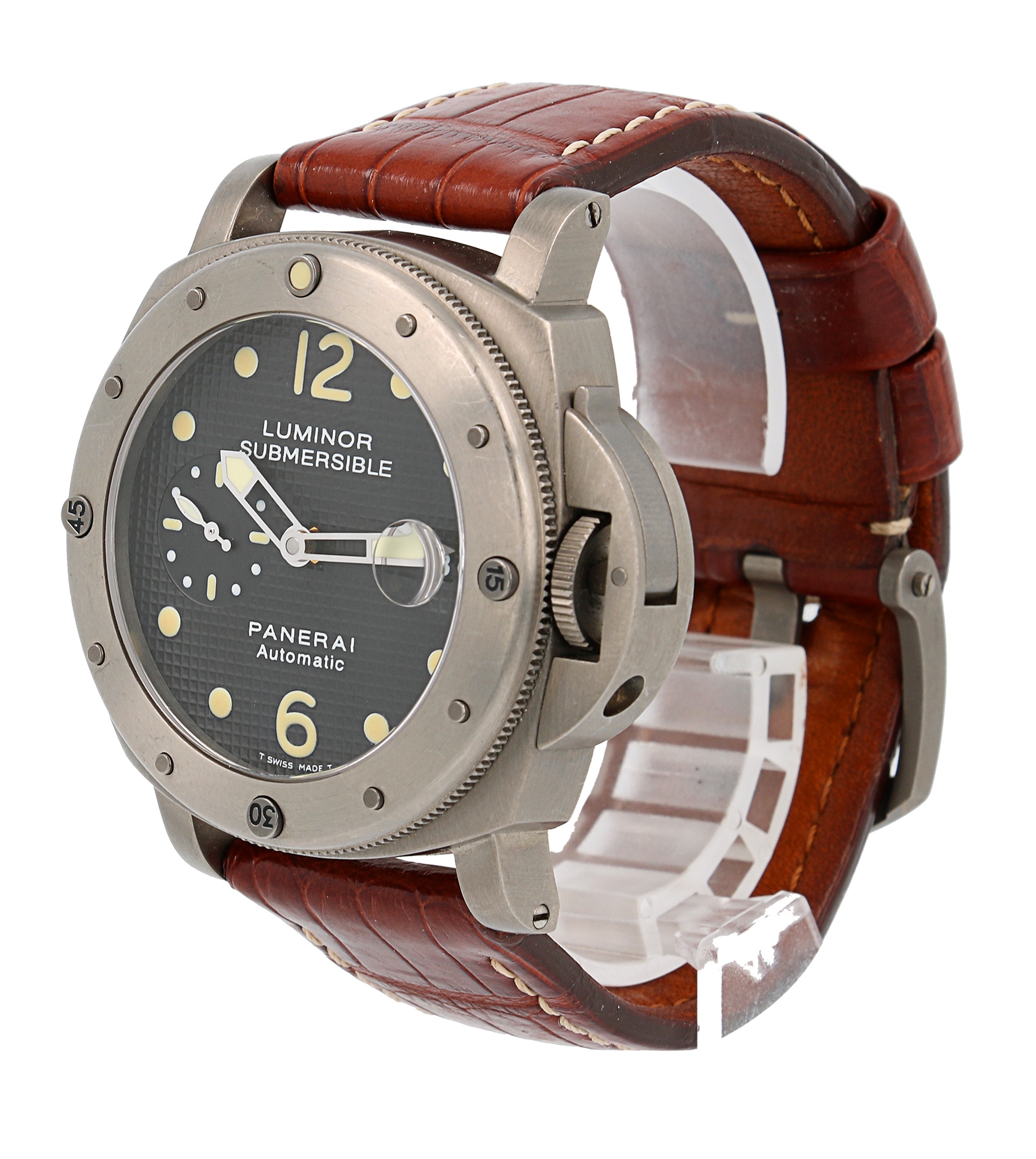 Panerai Luminor Submersible Titanium, referenza OP 6528,  cassa da 45 mm con quadrante nero, piccoli secondi, indicatore della data, lunetta girevole unidirezionale e vetro zaffiro. Alimentato da movimento a carica automatica. Anni 2000