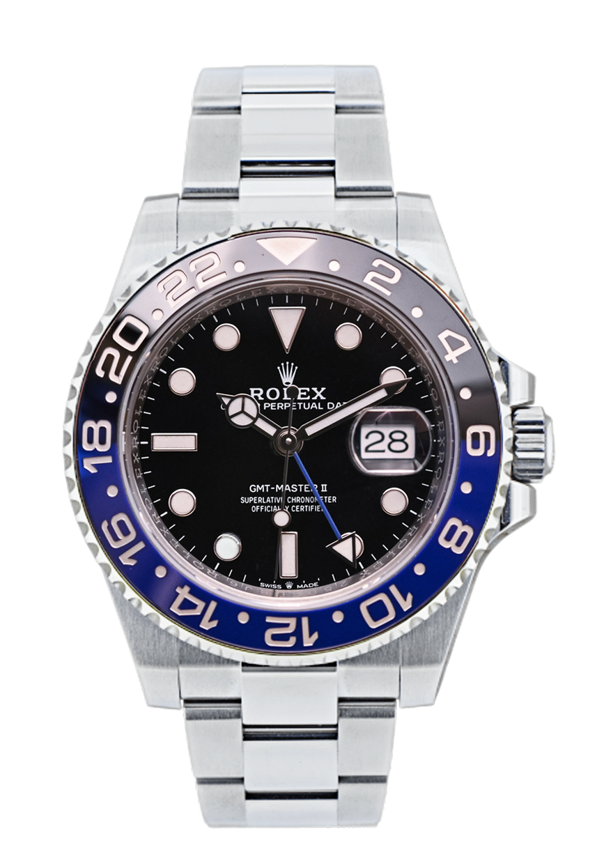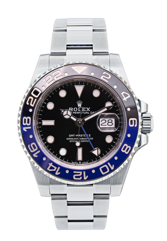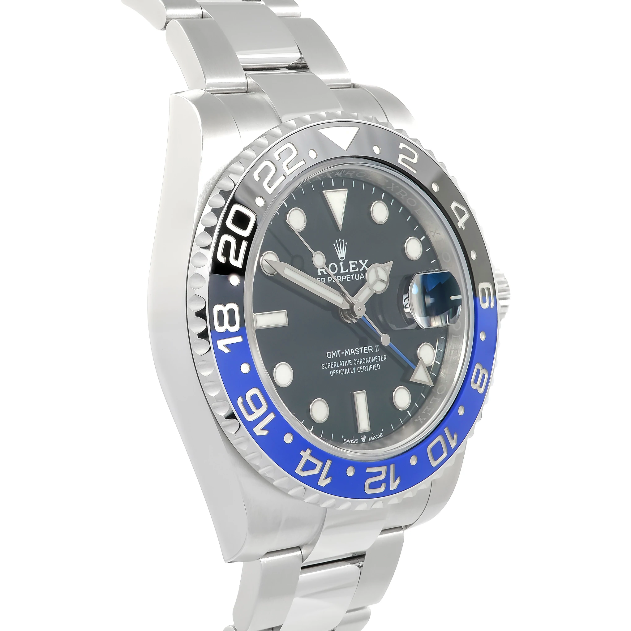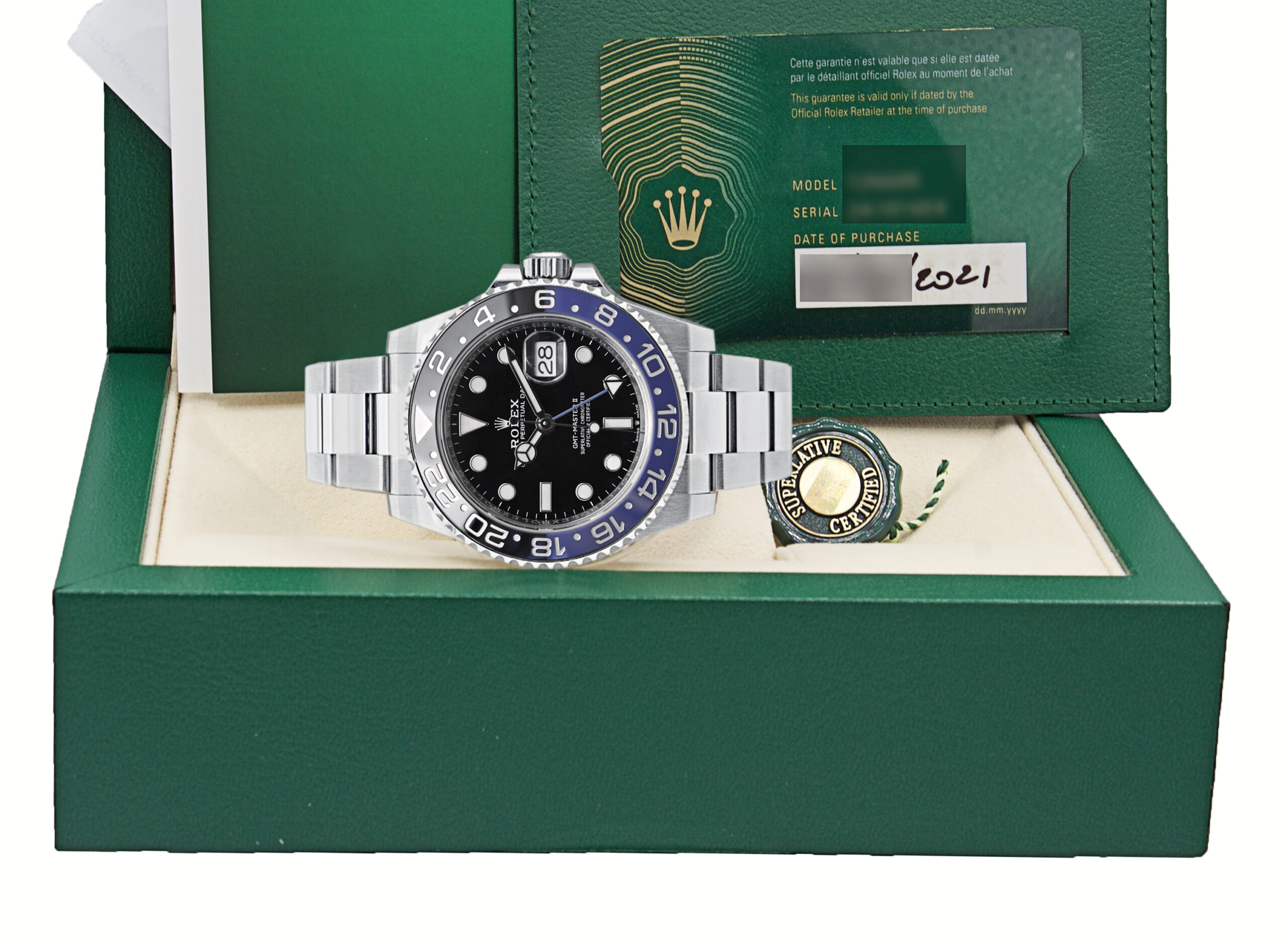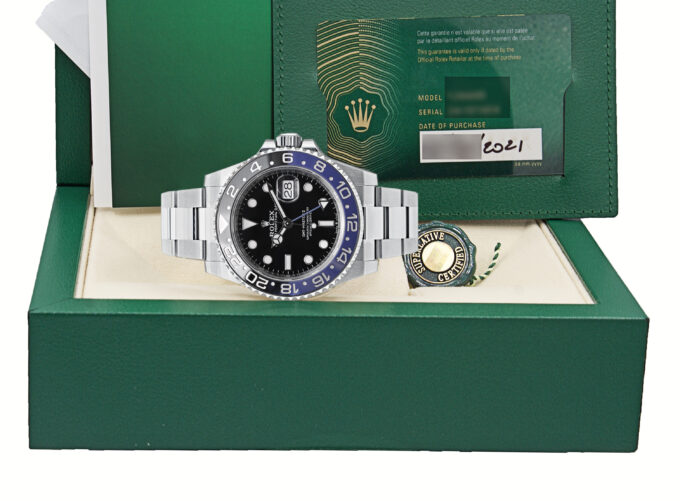 Rolex GMT-Master II in acciaio , referenza 126710BLNR, quadrante nero con indici applicati e data ad ore 3, fondello e corona a vite, movimento meccanico a carica automatica. Completo di scatola, e garanzia. 2021.