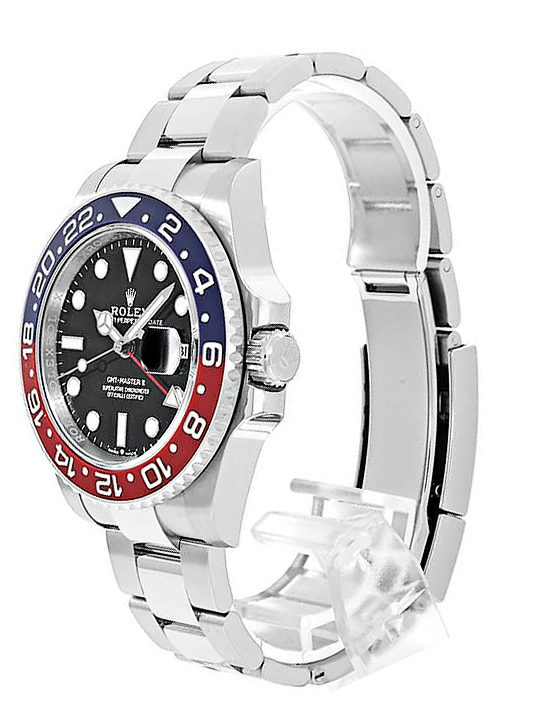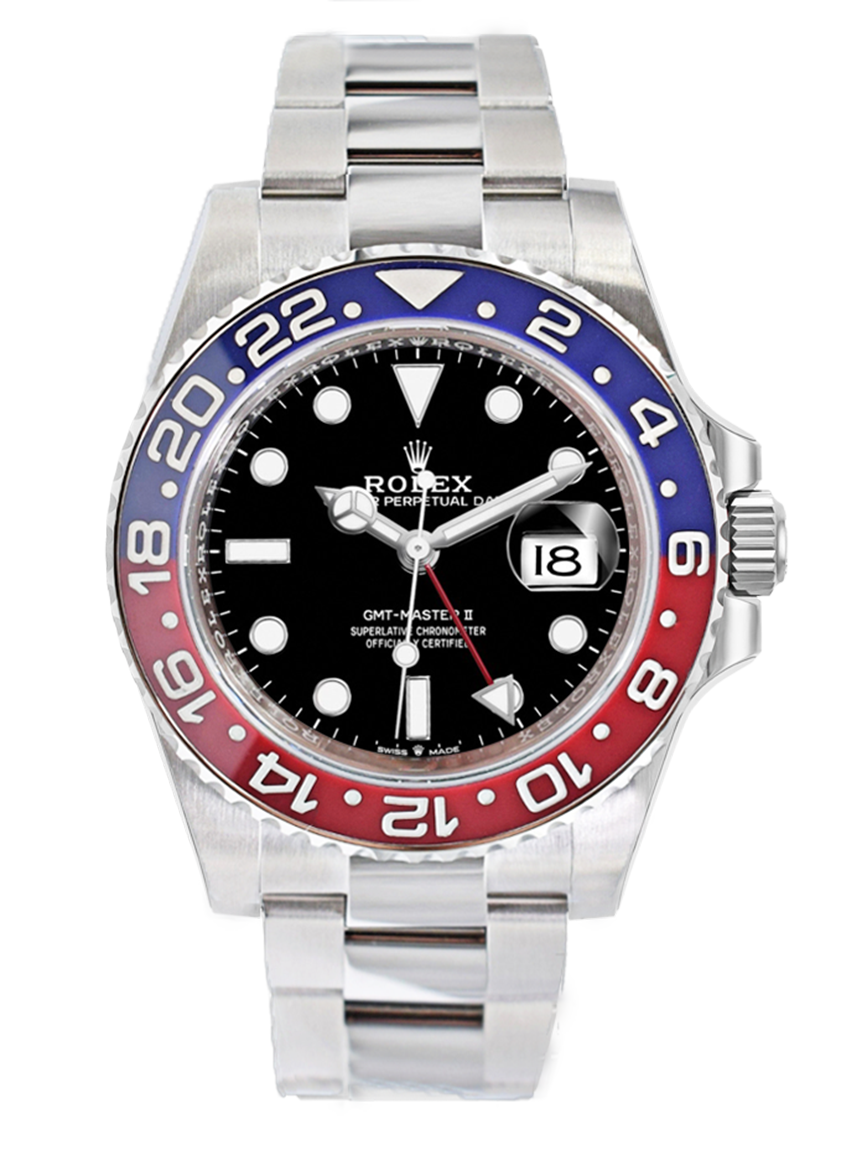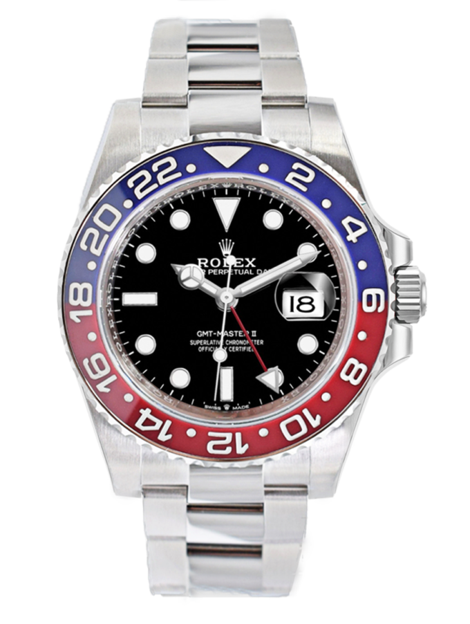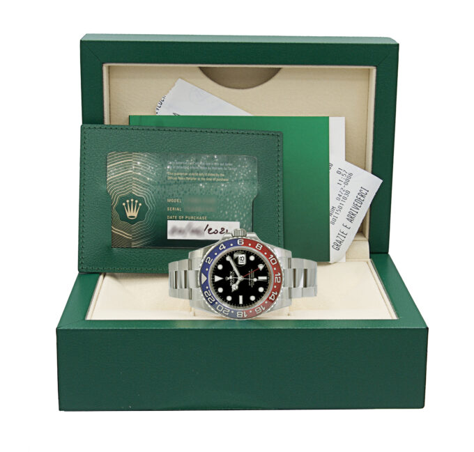 Rolex GMT-Master II in acciaio , referenza 126710BLRO, quadrante nero con indici applicati e data ad ore 3, fondello e corona a vite, movimento meccanico a carica automatica. Completo di scatola, e garanzia. 2021