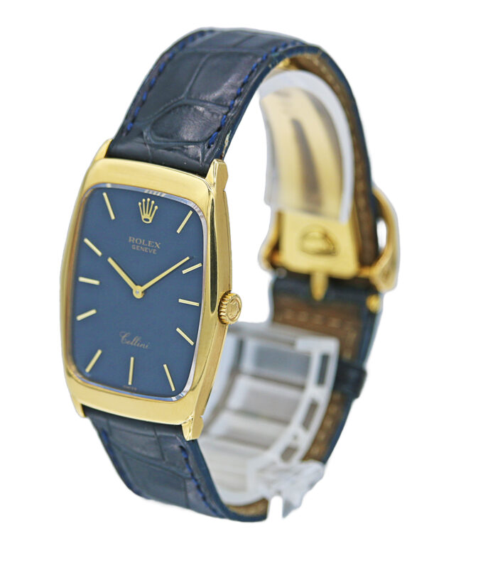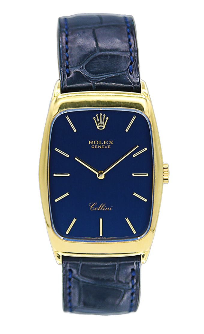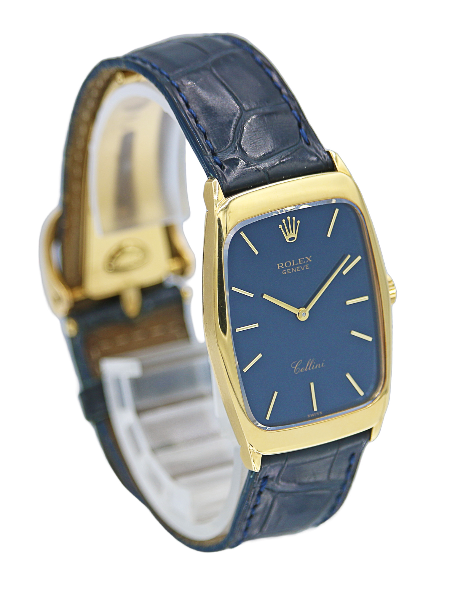 Rolex Cellini in Oro Giallo ref. 4136, quadrante blu in perfette condizioni, movimento manuale, anno 1995. 26x35mm