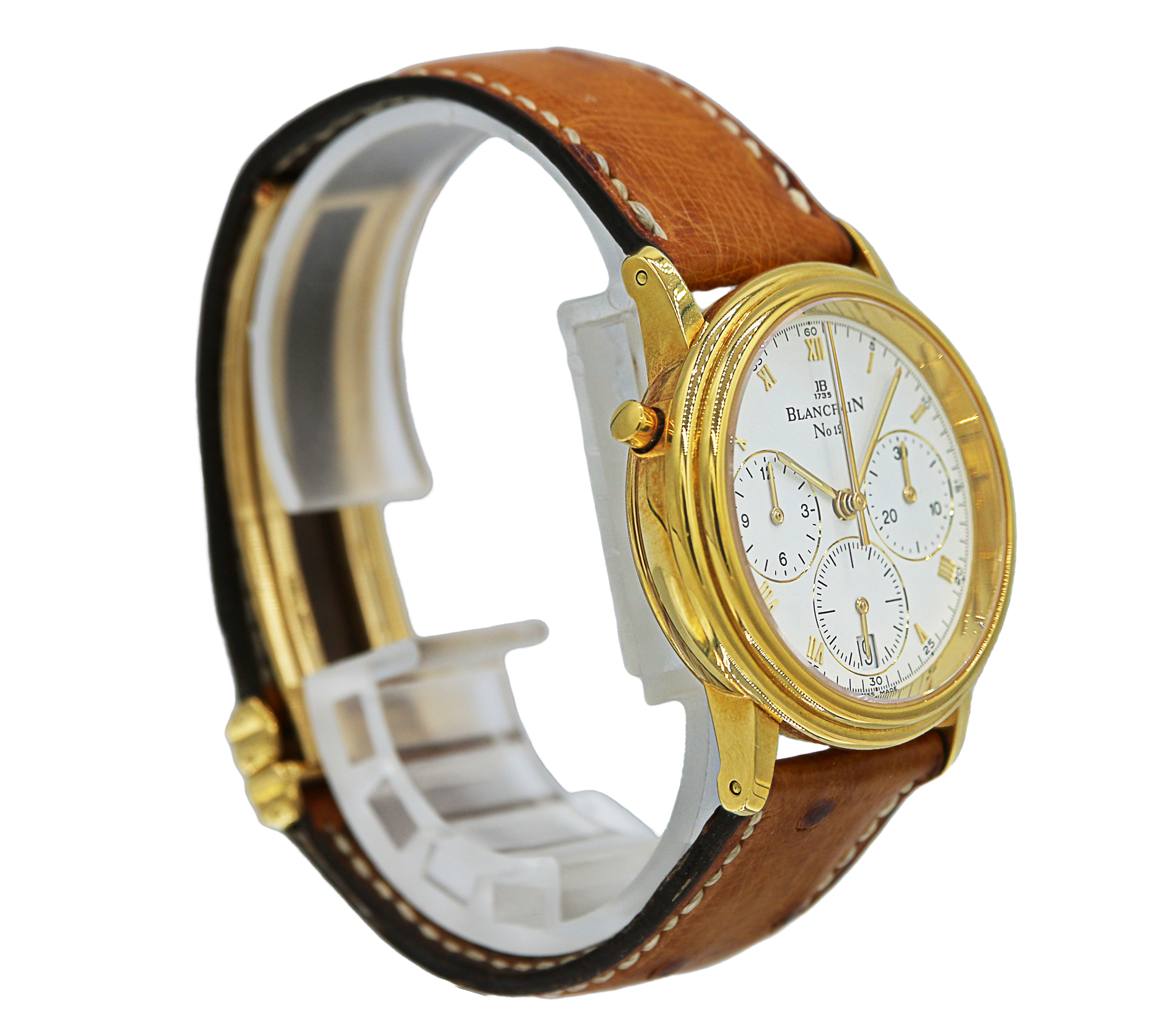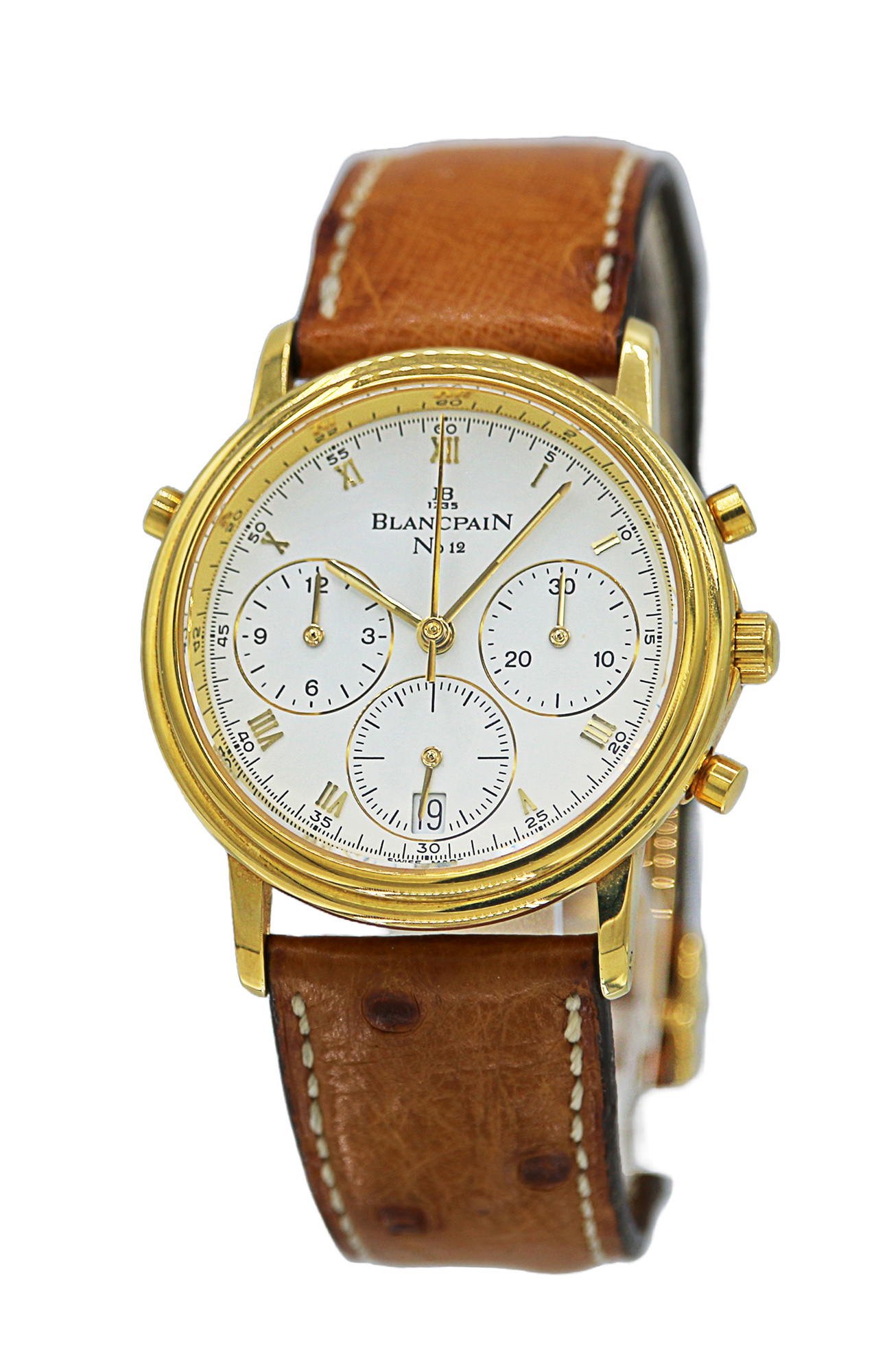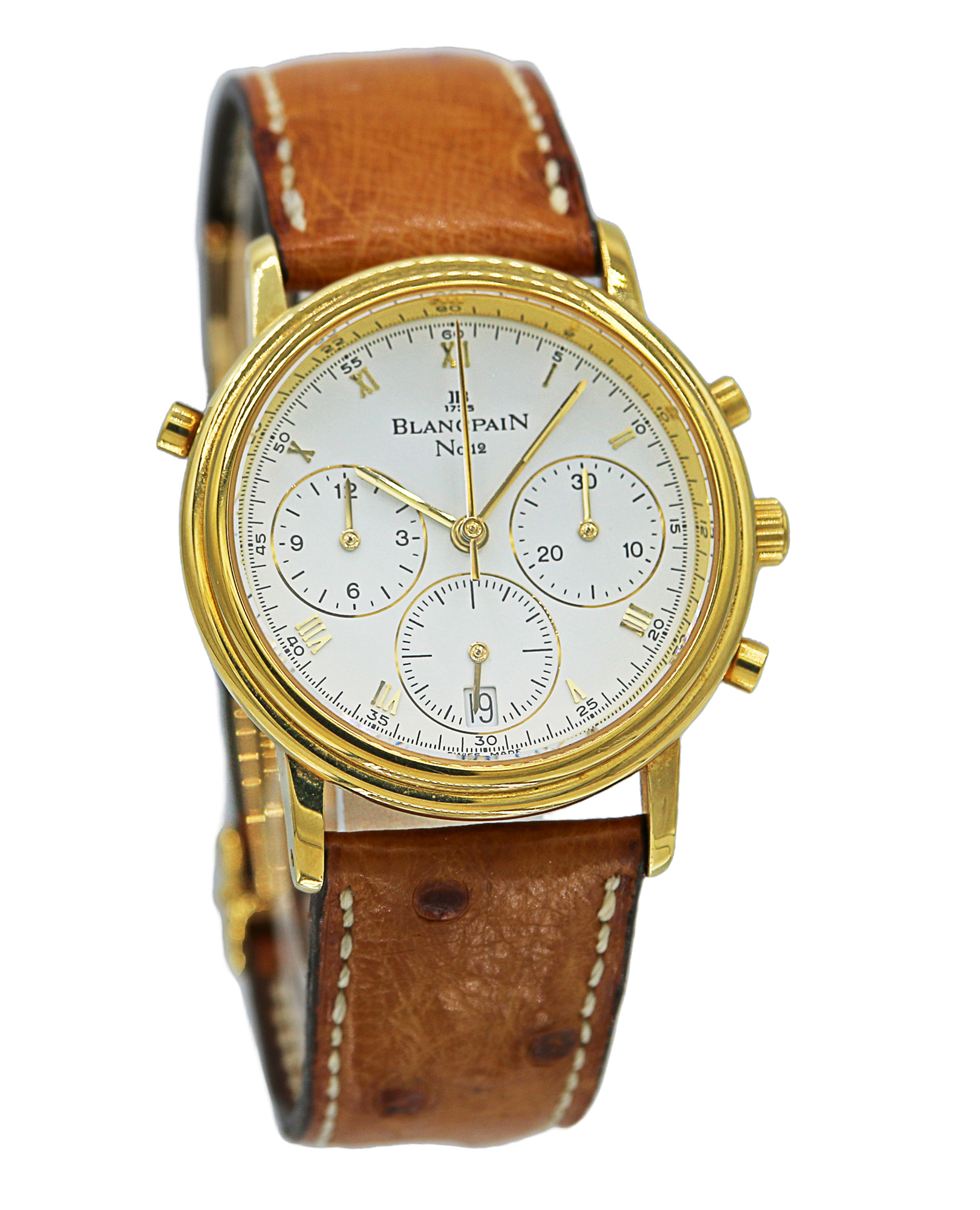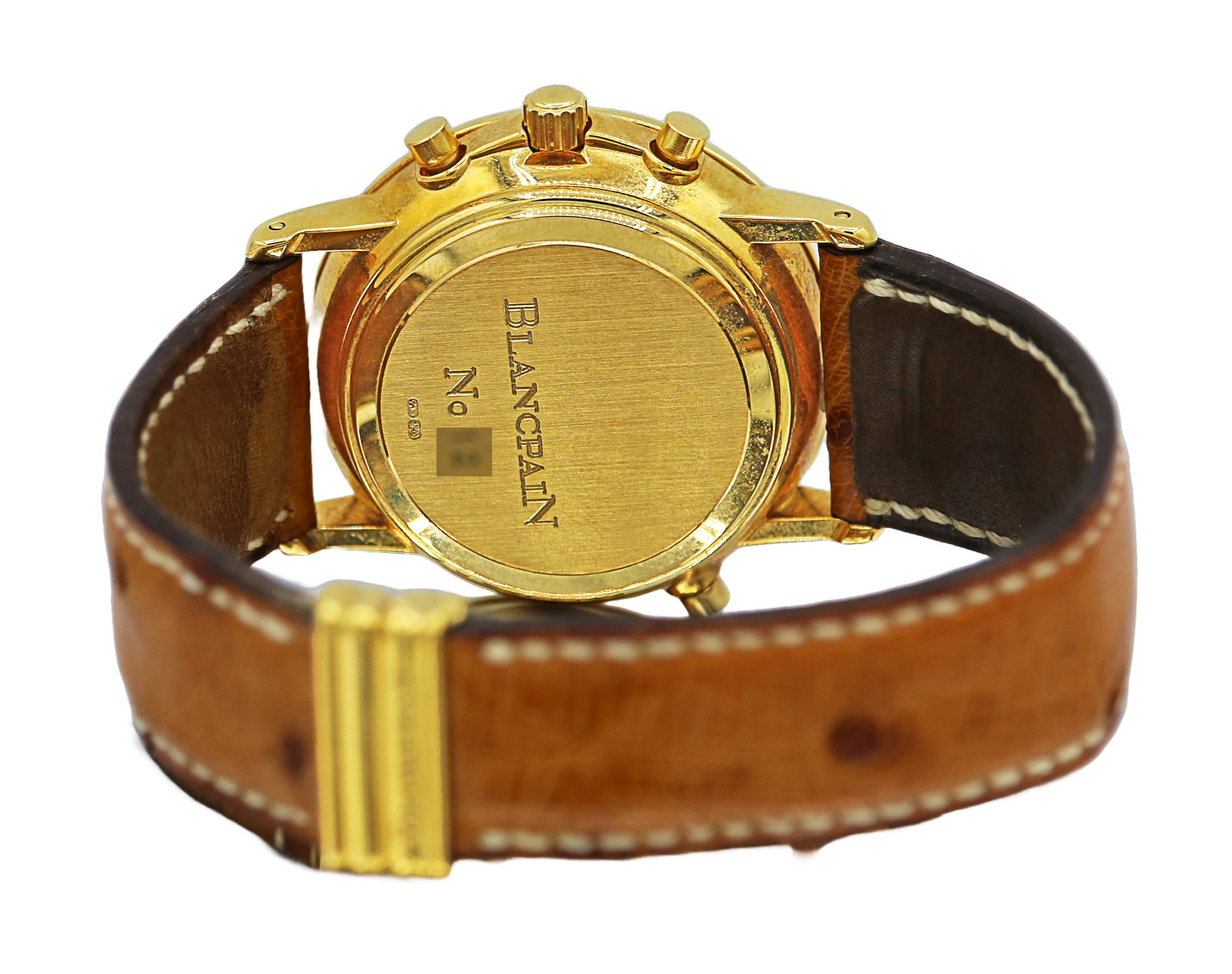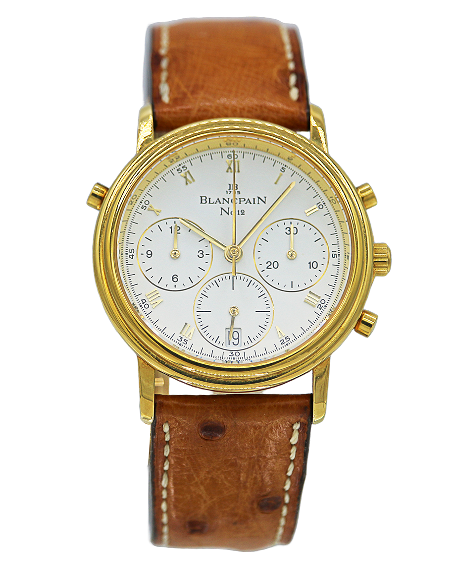 BlancpainBlancpain Villeret Rattrapante in Yellow Gold, reference 1186, white dial with applied Roman indexes, pump pushers to activate the chronograph and split-seconds function, screw-down case back and push-in crown, self-winding movement. 2000s.