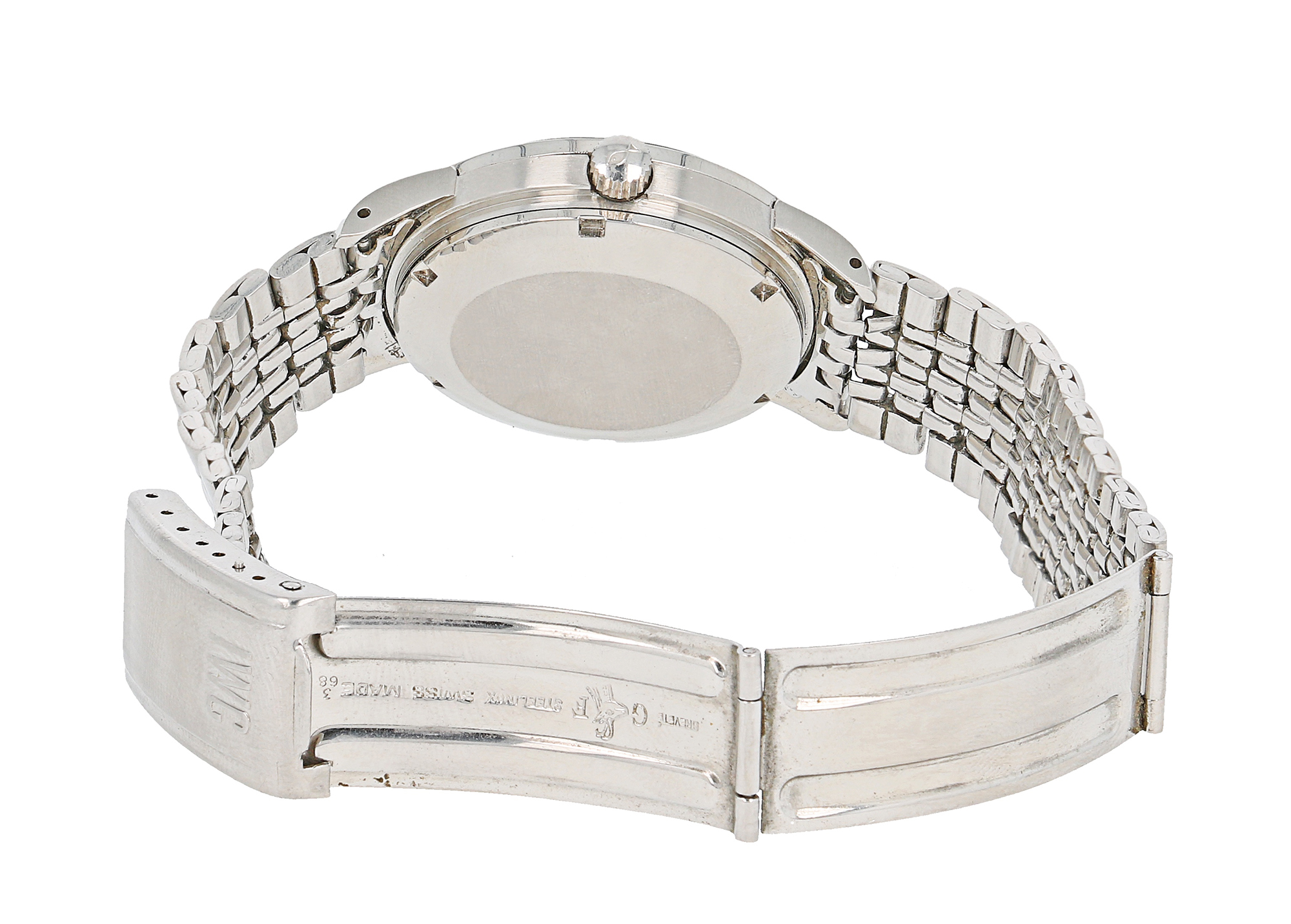 IWC Ingenieur in steel, reference 666, Silvered dial with applied indexes, mechanical movement with automatic winding. 1960s, watch in perfect condition and very rare to find. Gay Freres IWC original bracelet.