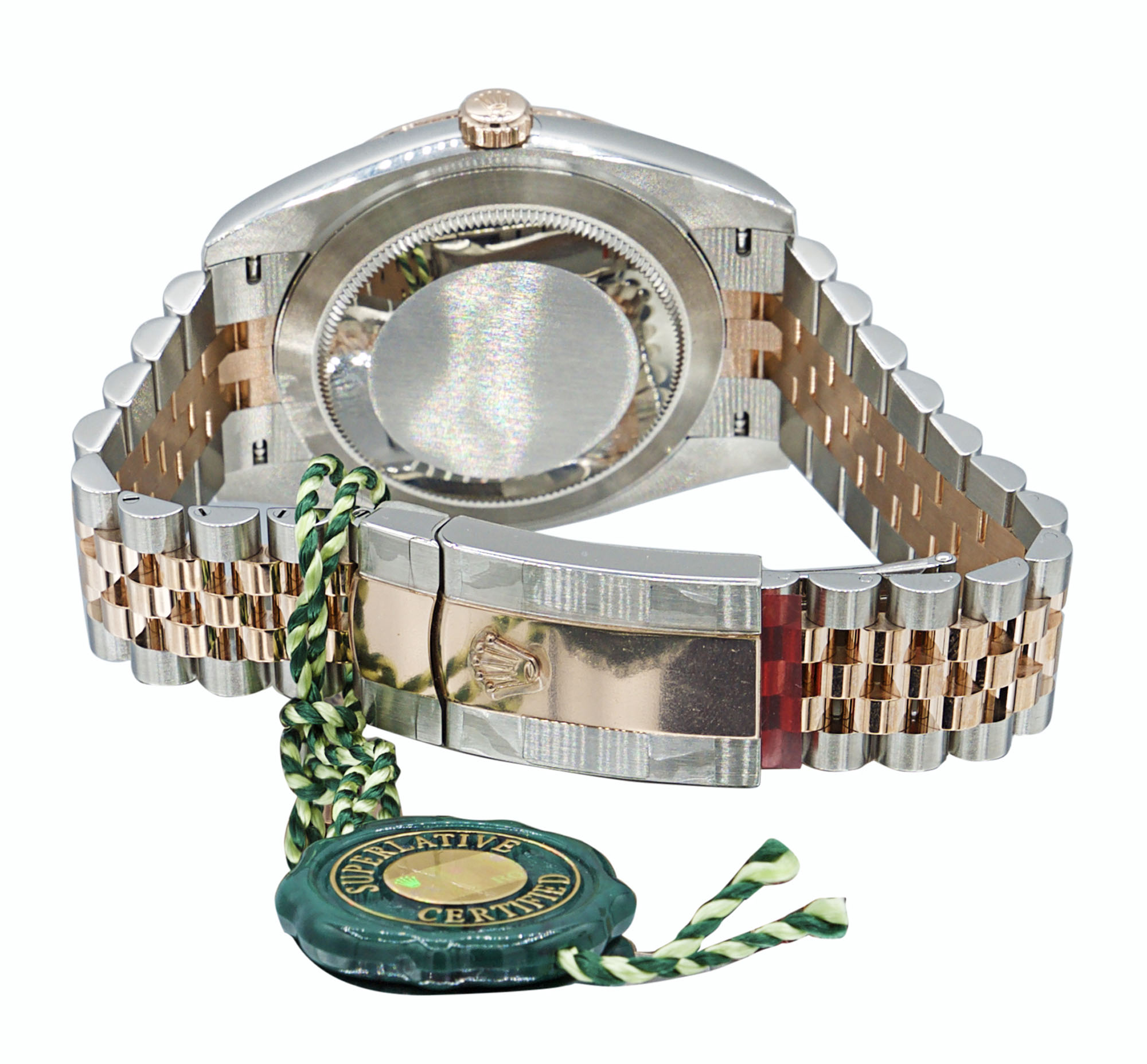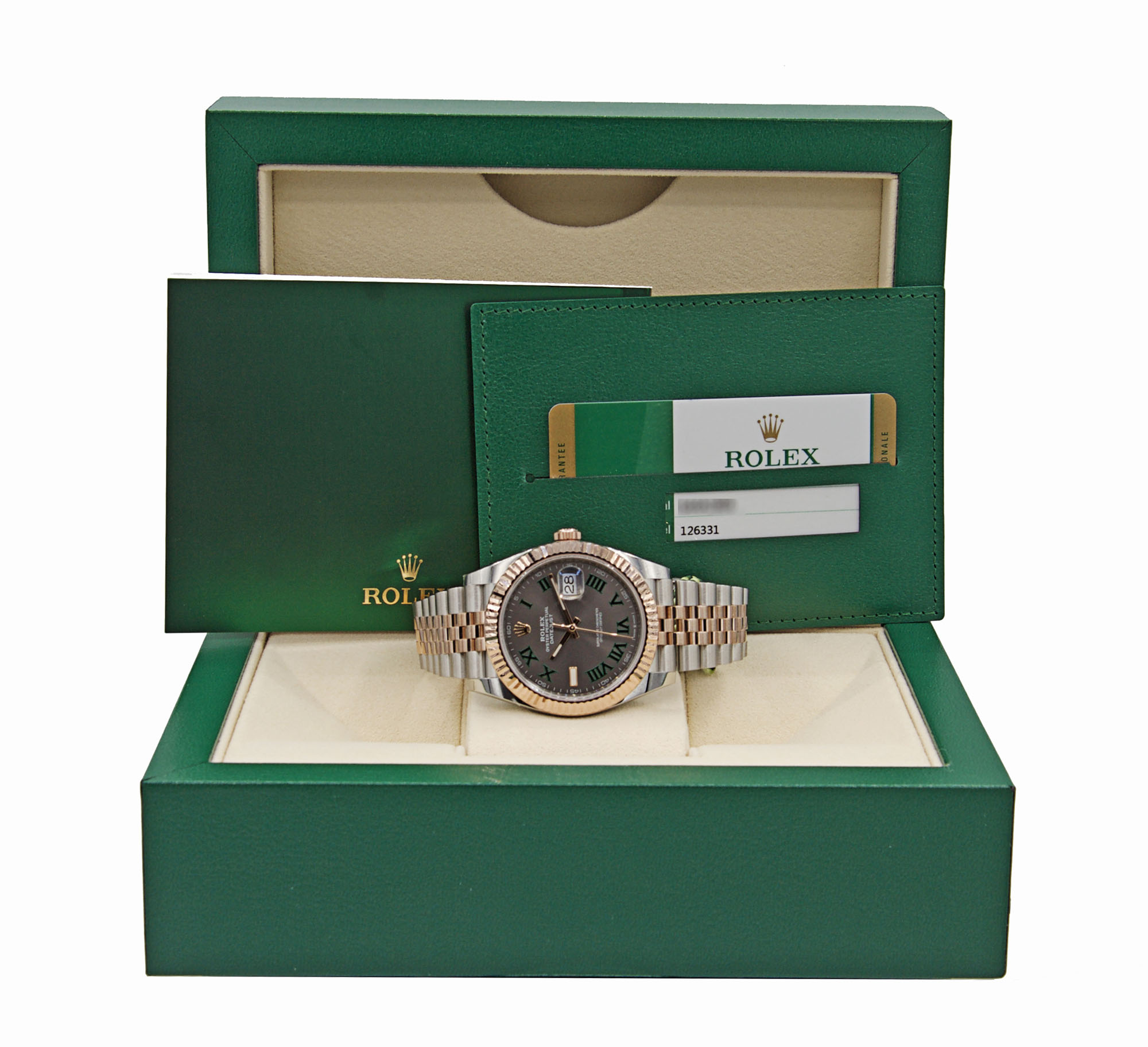 Rolex Oyster Perpetual Datejust in steel and pink gold, reference 126331, gray “Wimbledon” dial with applied Roman indexes and date at 3 o’clock, screw-down back and crown, self-winding mechanical movement. 2000s, with box and guarantee.