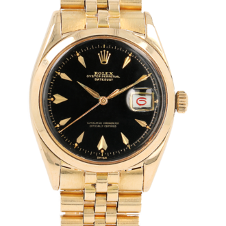 RolexRolex Datejust Lady in Yellow Gold ref. 69178, Oyster case with screw-down crown and case back, blue dial with diamonds, automatic movement, 1980s. Rolex President Bracelet in Yellow Gold. Used very little as per the engravings still visible on the “Original Registered Design” case back. 26mm.
